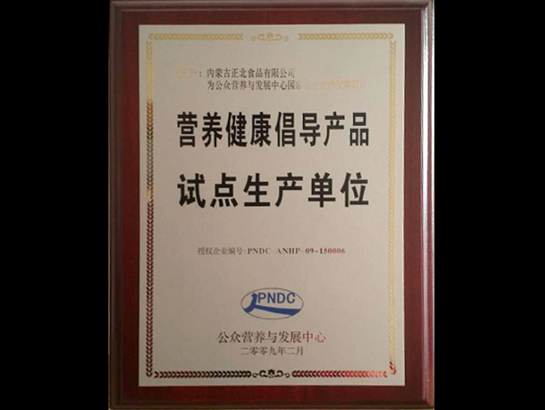 2009年,正北公司成為“營養健康倡導產品試點生產單位”。